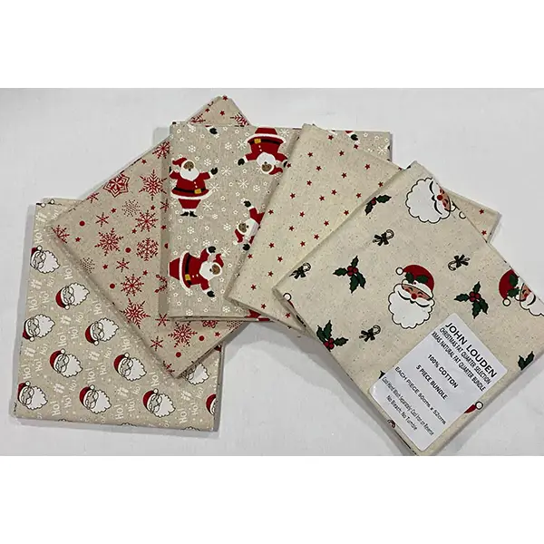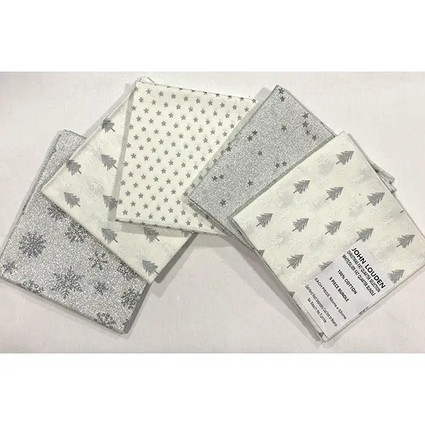 Efnisbútar (Fat Quarter) eru pakkar með 5 bútum að stærðinni 50 x 52 cm.