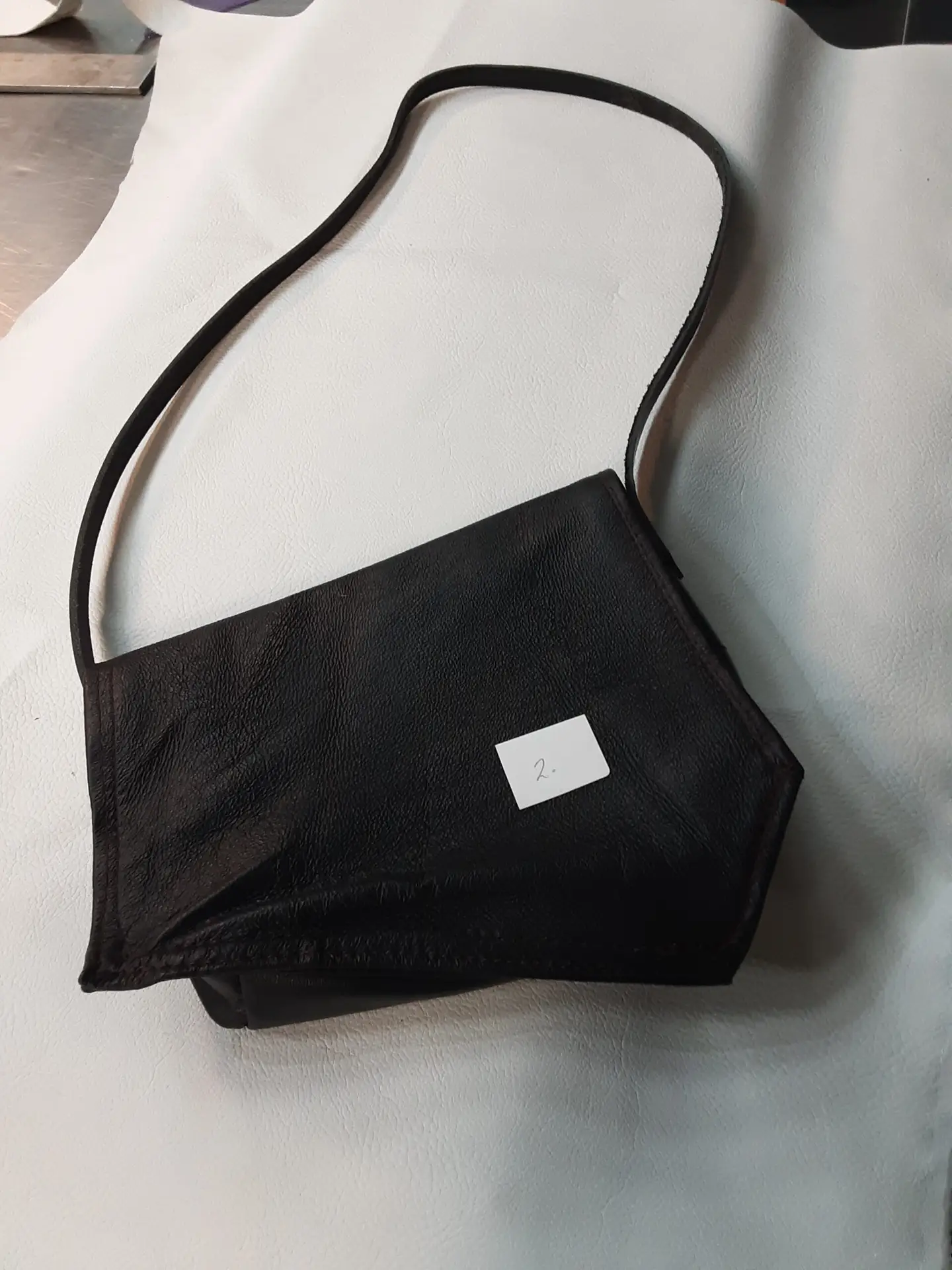 Handunnin taska úr geitaskinni, 23x19x7 cm.