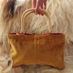 Afskaplega falleg og eiguleg handtaska með handföngum úr bambus.