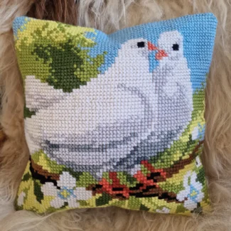 Púðarnir eru 40×40 að stærð með bómullarefni í baki, rennilás er á baki þannig að hægt er að taka fyllinguna úr. Fyllingin er úr anda fiðri.