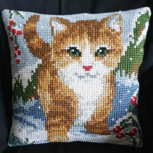 Kettlingur– útsaumað í grófan java með akrýlgarni. Bak er úr grænu bómullar efni.