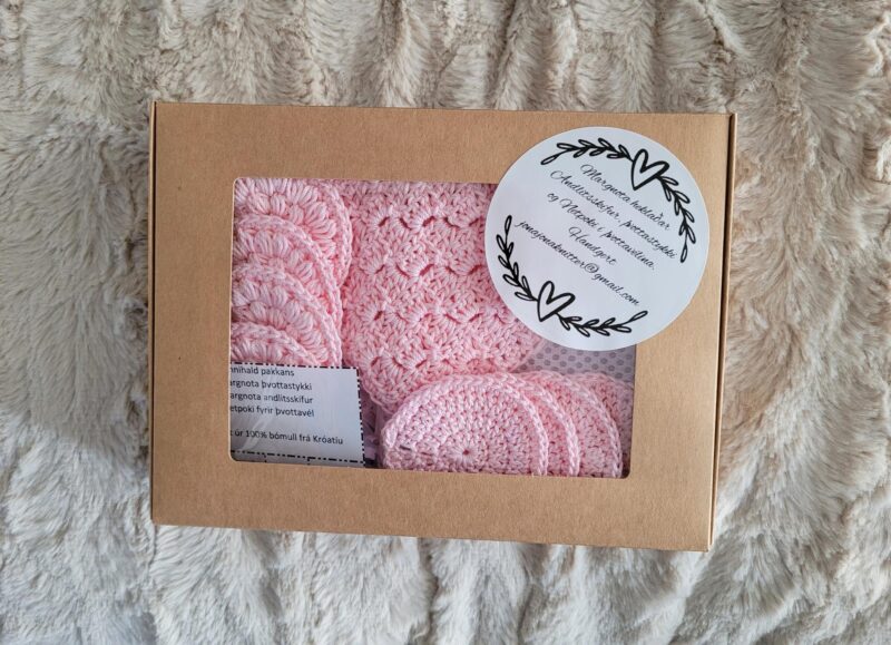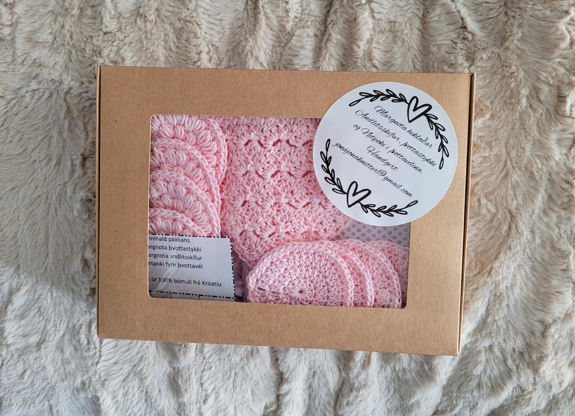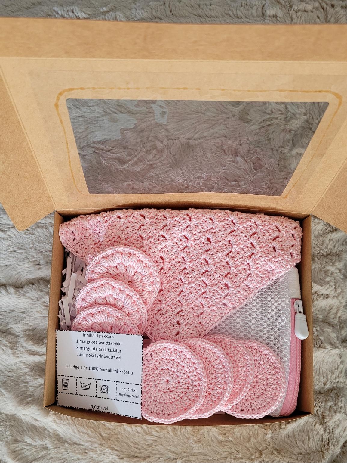 Margnota andlitsskífur og þvottastykki. Gjafapakkning – bleikt