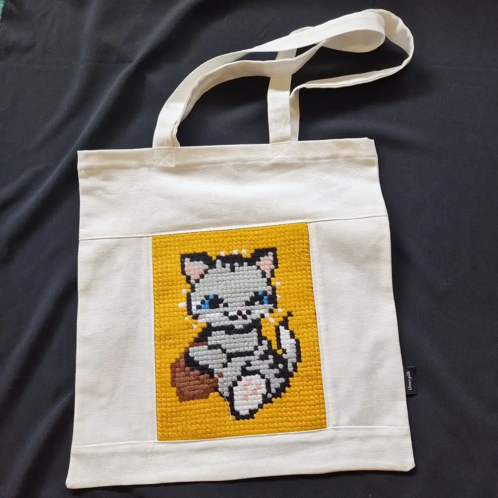 Tautaska – skreytt með útsaumi í grófan java með akrýlgarni. Taskan er saumuð úr vönduðu bómullarefni (canvas).